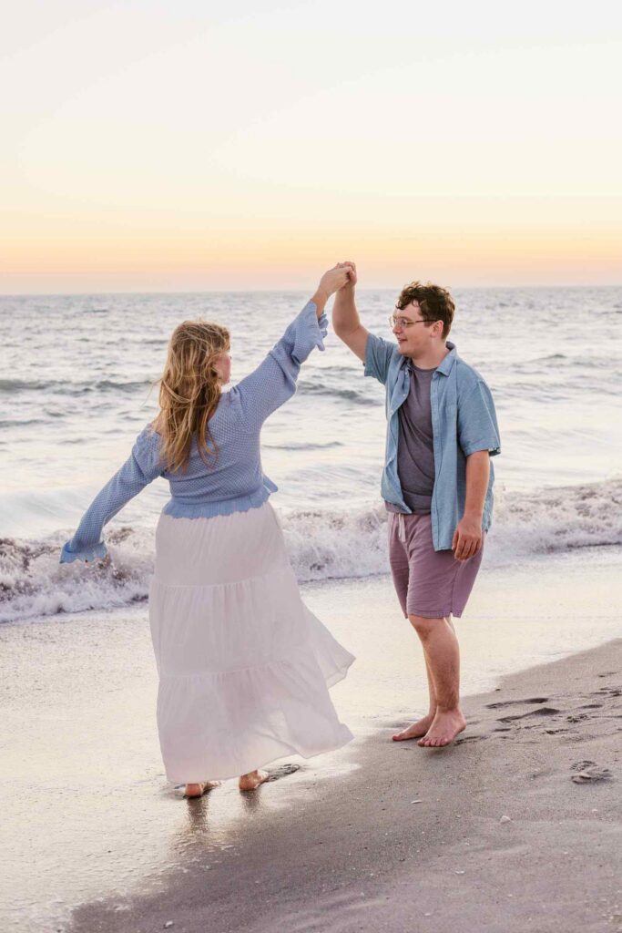 After our conch education session, we got some more pictures running around in the shoreline. We also got these pics of them watching and waiting for the green flash. A rare phenomena where a green spot appears just above the sun as it goes beneath the horizon. It didn’t happen this time, but now that I know about it I’ll happily be waiting for it at future sessions! We wrapped up with one last reflection shot and then returned to the parking lot. And yes they’re shoes were still waiting for them!