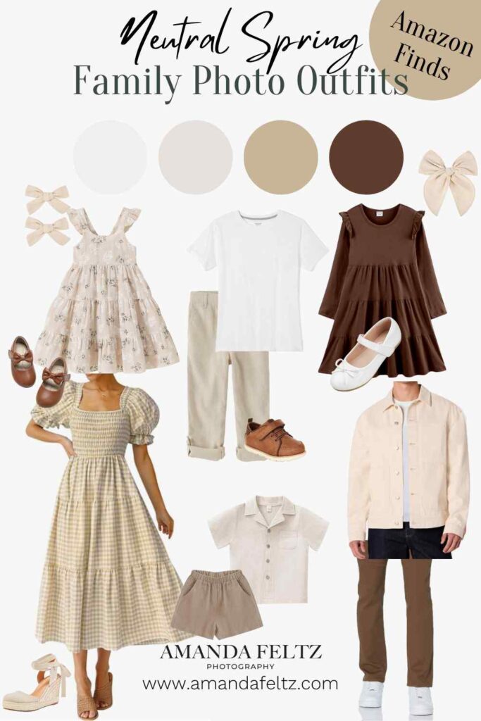 Although you don’t have to buy new clothes for your photo shoot, sometimes it’s fun to or you might not already have outfits that look good together! I’ve got you covered, here are some photographer certified spring family photo outfits. Each set has an outfit for mom, dad, a baby/toddler of each gender, and a child aged 4 to 12 of each gender. So there should be something for every family member. Plus, the adult options would also be great picks for a spring engagement session!